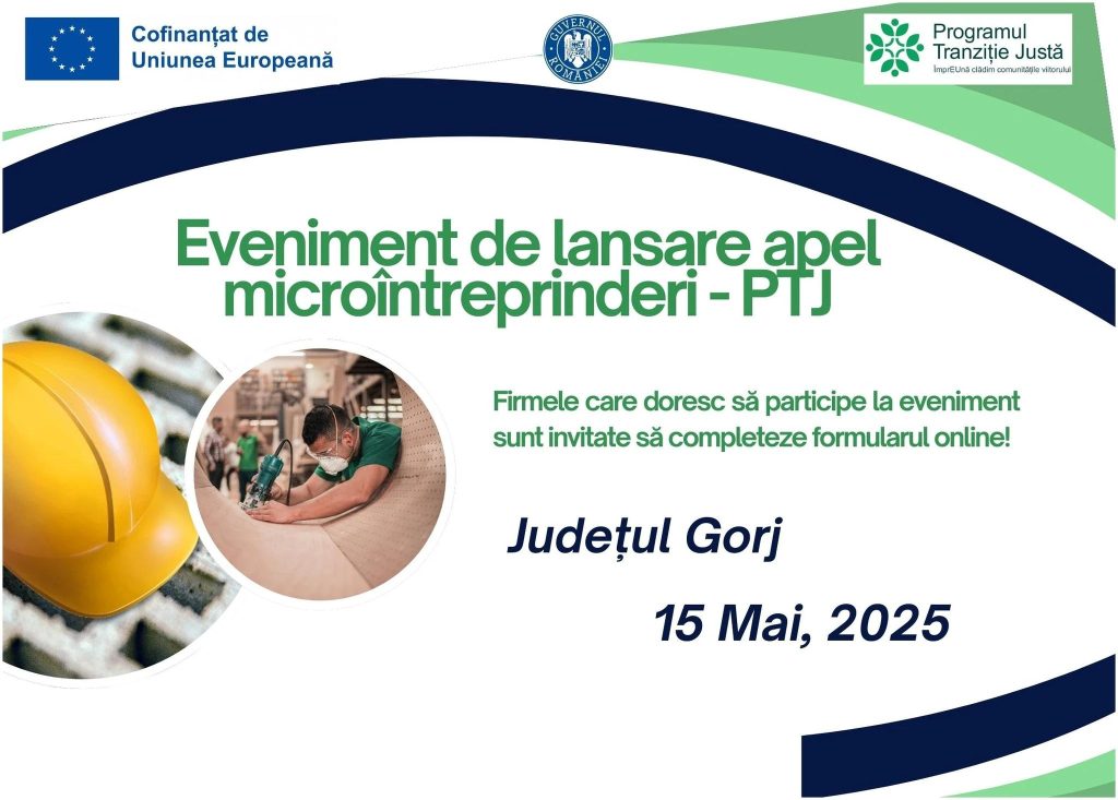 Apelul pentru microîntreprinderi, din cadrul Programului de Tranziție Justă, va fi lansat, astăzi, la Târgu-Jiu.