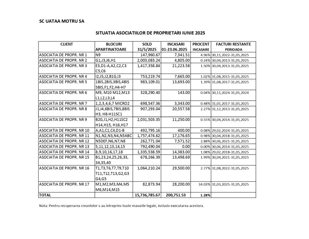 Morega afirmă că sumele încasate, lunar, de la populație sunt foarte mici, raportat la banii de care UATAA are nevoie pentru a funcționa.