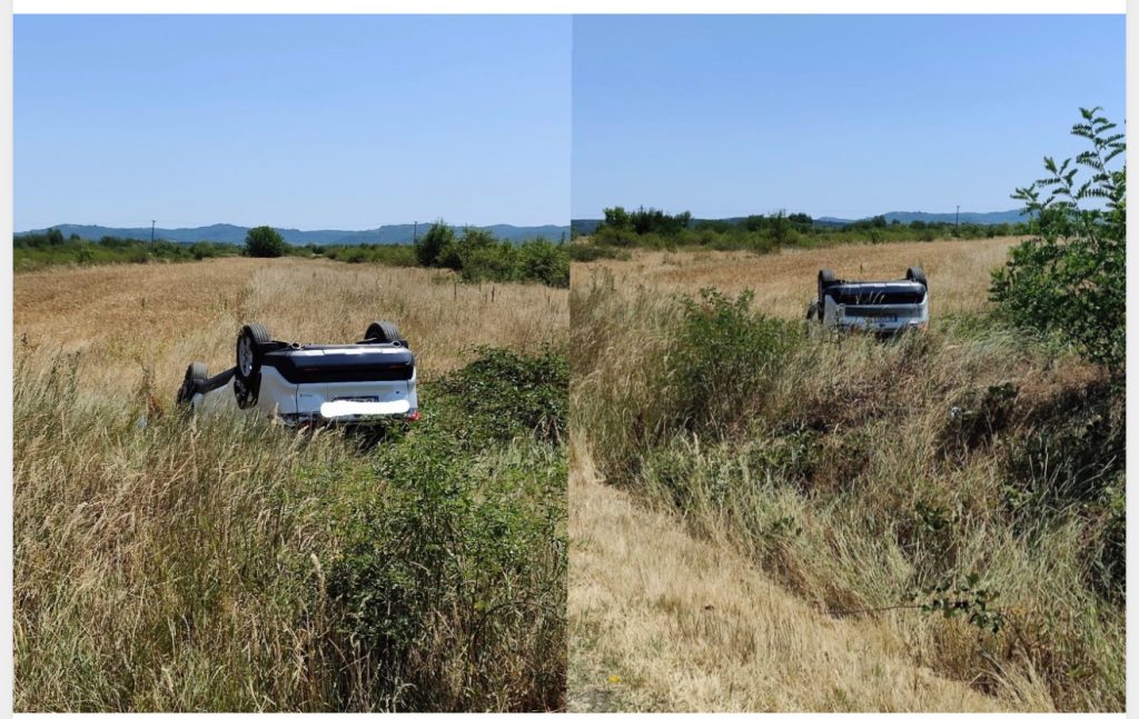 Un șofer s-a răsturnat, duminică, cu mașina pe raza satului Câmpu Mare al comunei Scoarța.