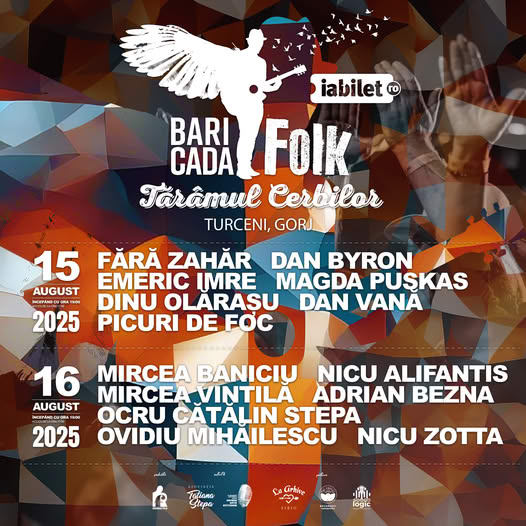 ”În inima verii, Baricada Folk 2025 te invită în Tărâmul Cerbilor – Turceni, Gorj. Două zile de muzică, natură și prietenie la cel mai liber festival de folk din România. 15-16 august, Tărâmul Cerbilor – Turceni, Gorj. Baricade de cântece si poezie cu: Alifantis & Mirică – Gemini, Mircea Baniciu, Dan Byron & Sergiu Mitrofan, Mircea Vintilă, Dinu Olărașu, Fără Zahăr, Emeric Imre, Magda Puskas & Rareș Suciu, Dan Vană, Cătălin Stepa & Aurelian Epuraș, OCRU cu Adrian Mărgineanu, Dorin Pitariu & Marius Dumitrescu, Adrian Bezna, Ovidiu Mihăilescu, Nicu Zotta, Picuri de Foc” transmit organizatorii.