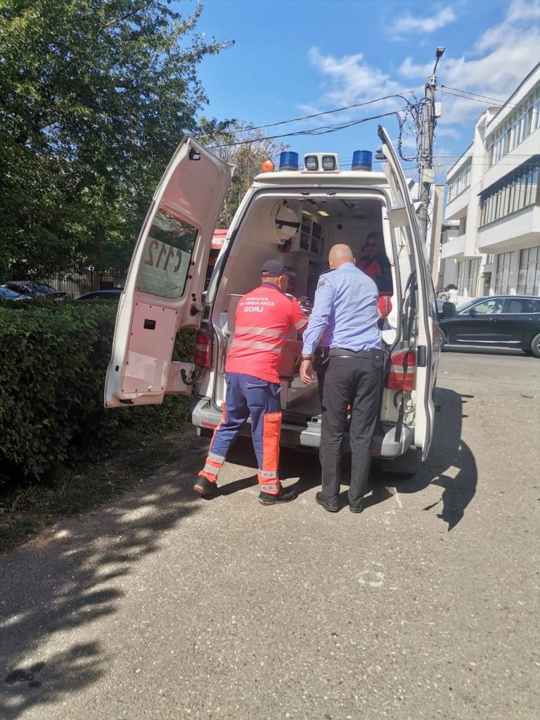 O femeie, de 84 de ani, a fost luată cu ambulanța după ce i s-a făcut rău pe o stradă din Târgu-Jiu. Apelul la 112 a fost făcut de e echipă de polițiști locali.