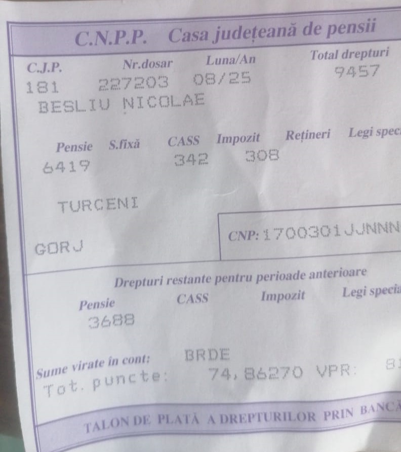 Nicolae Beșliu mai spune că a luat legătura cu avocatul, după ce a văzut că pensia i-a venit tăiată, deși nu mai suportă să stea prin sălile de judecată. Fostul energetician va intra, de luni, în greva foamei în fața Casei de Pensii Gorj.