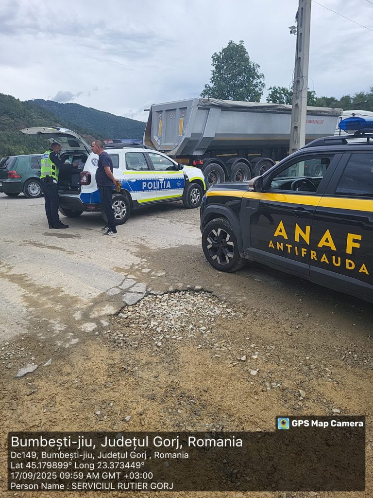 ”La data de 17 septembrie a.c., polițiști din cadrul Serviciului Rutier au continuat acțiunile de verificare a legalității transportului rutier de mărfuri, pe DC 149 Bumbești Jiu – Pleșa, împreună cu reprezentanți ai Directiei Regionale Antifraudă Târgu Jiu, ocazie cu care au fost depistați doi operatori, care transportau piatră, depășind masa totală maximă admisă a autovehiculului” anunță Poliția Gorj.
