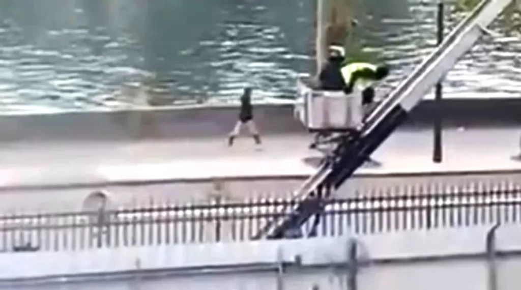 Filmarea arată cum doi dintre cei patru hoți, cu fețele acoperite de cagule, unul dintre ei îmbrăcat în muncitor, coboară rapid cu “prada” de 88 de milioane de euro pe macaraua de pe celebrul muzeu, fug pe scutere și se fac nevăzuți.