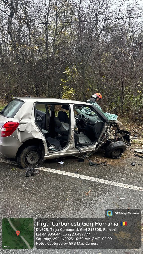 „Am fost solicitați să intervenim pentru gestionarea unei situații de urgență generată de un accident rutier produs pe raza orașului Târgu-Carbunesti, satul Pojogeni. Din informațiile pe care le am în acest moment este vorba despre un autoturism în care se aflau 4 persoane. Una dintre acestea s-a autoevacuat, una este încarcerată, iar cele 2 persoane aflate pe bancheta din spate sunt blocate în autoturism. Intervenim cu 2 autospeciale pentru descarcerare, o ambulanță SMURD și 4 ambulanțe din cadrul Serviciului Județean de Ambulanță Gorj. Cele 3 persoane încarcerate au fost extrase de către echipajele noastre de intervenție și sunt conștiente, cooperante. Toate cele 4 victime au fost preluate de către echipajele medicale și urmează să fie transportate la spitalele din Târgu-Carbunești și Târgu-Jiu” a comunicat ISU Gorj.