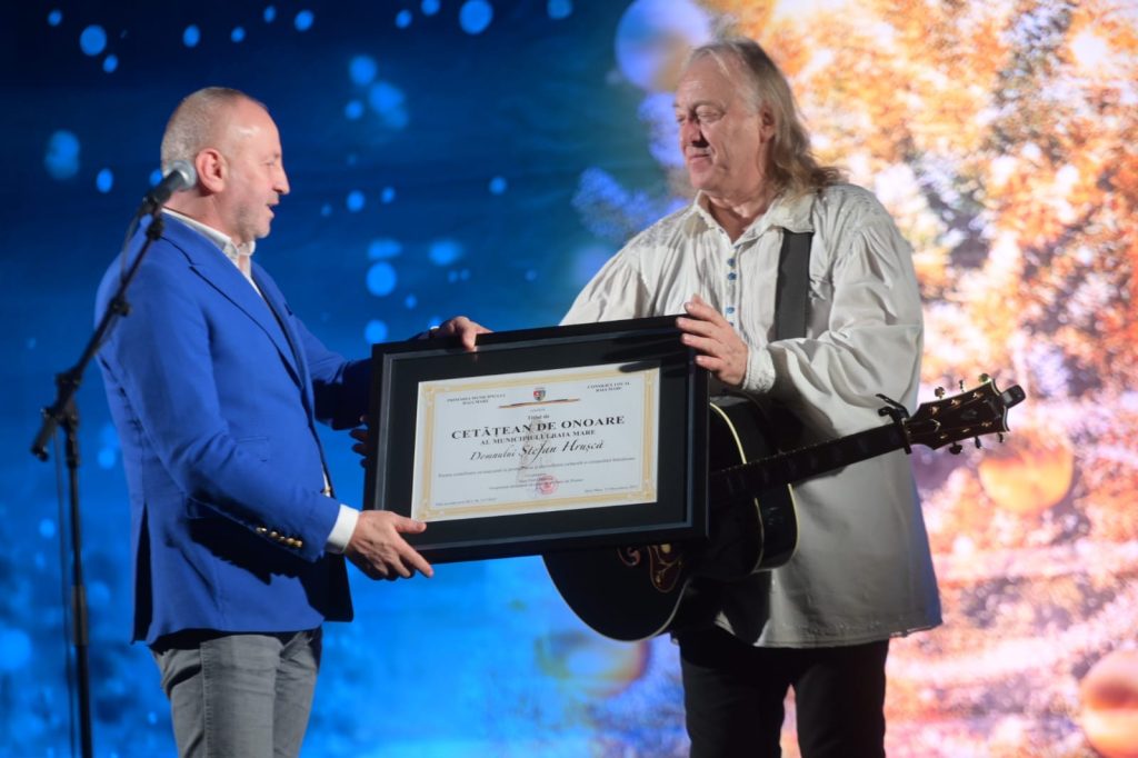 Artistul Ștefan Hrușcă a primit titlul de cetățean de onoare al județului Maramureș în timpul unui concert de colinde susținut în fața câtorva mii de persoane care se aflau, joi seara, în Piața Millenium din municipiul Baia Mare.