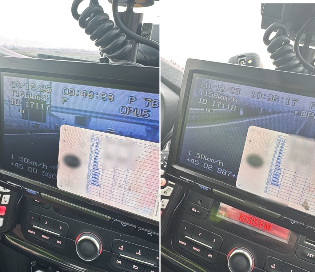 Doi conducători auto au fost depistați circulând cu viteze periculoase, în condiții de ceață, pe șoseaua de centură a Târgu Jiului. Unul avea 158 km/h, altul 146 km/h, în condițiile în care limita legală de viteză este de 90 km/h pe tronsonul de drum respectiv.