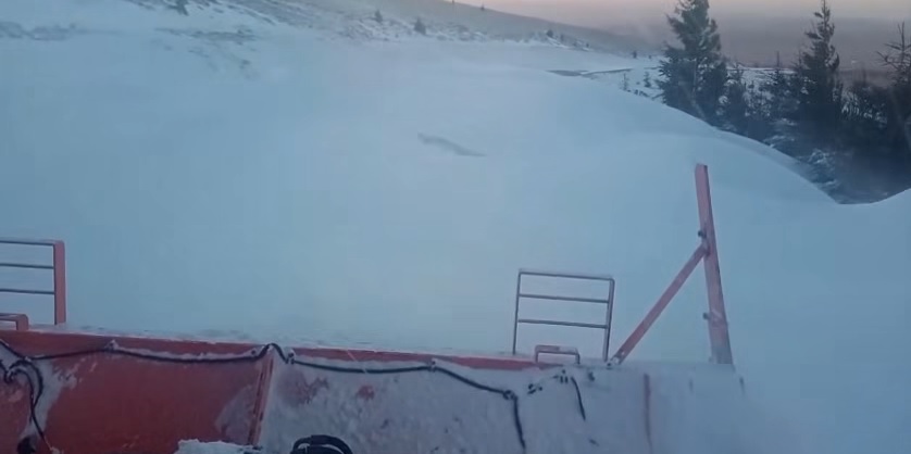 Pe DN 67C, între Novaci și Rânca, se acționează în acest moment cu autofreze pentru îndepărtarea zăpezii viscolite de pe partea carosabilă, în vederea reluării circulației rutiere în condiții de siguranță.