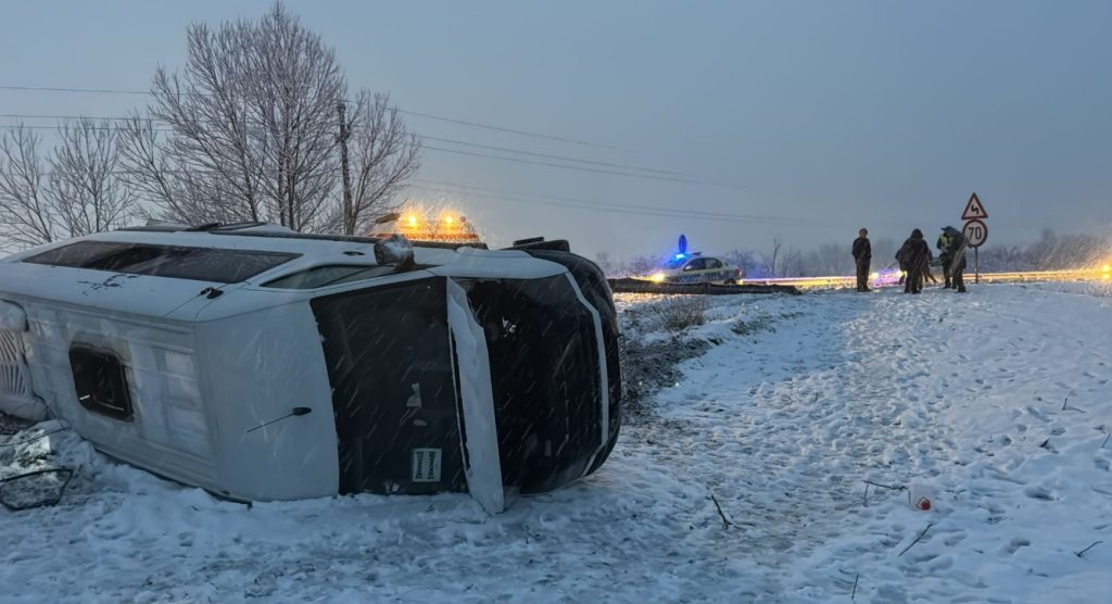 Un microbuz de transport persoane, în care se aflau 6 pasageri, angajați ai Termocentralei Rovinari, s-a răsturnat în afara părții carosabile, în această dimineață, pe DN66.