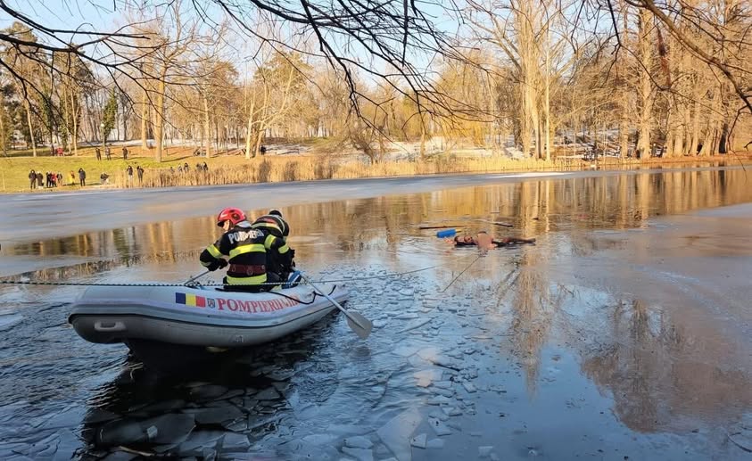 Misiune dramatică de salvare, sâmbătă, la Craiova. Șapte oameni au fost la un pas să moară într-un lac înghețat din Parcul ”Nicolae Romanescu”. O fetiţă de 5 ani, care a încercat gheaţa, a căzut în apă, iar tatăl ei şi mai mulţi trecători s-au aruncat să o salveze. Copila a stat cel puţin 20 de minute printre sloiuri în aşteptarea pompierilor.