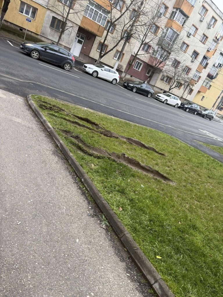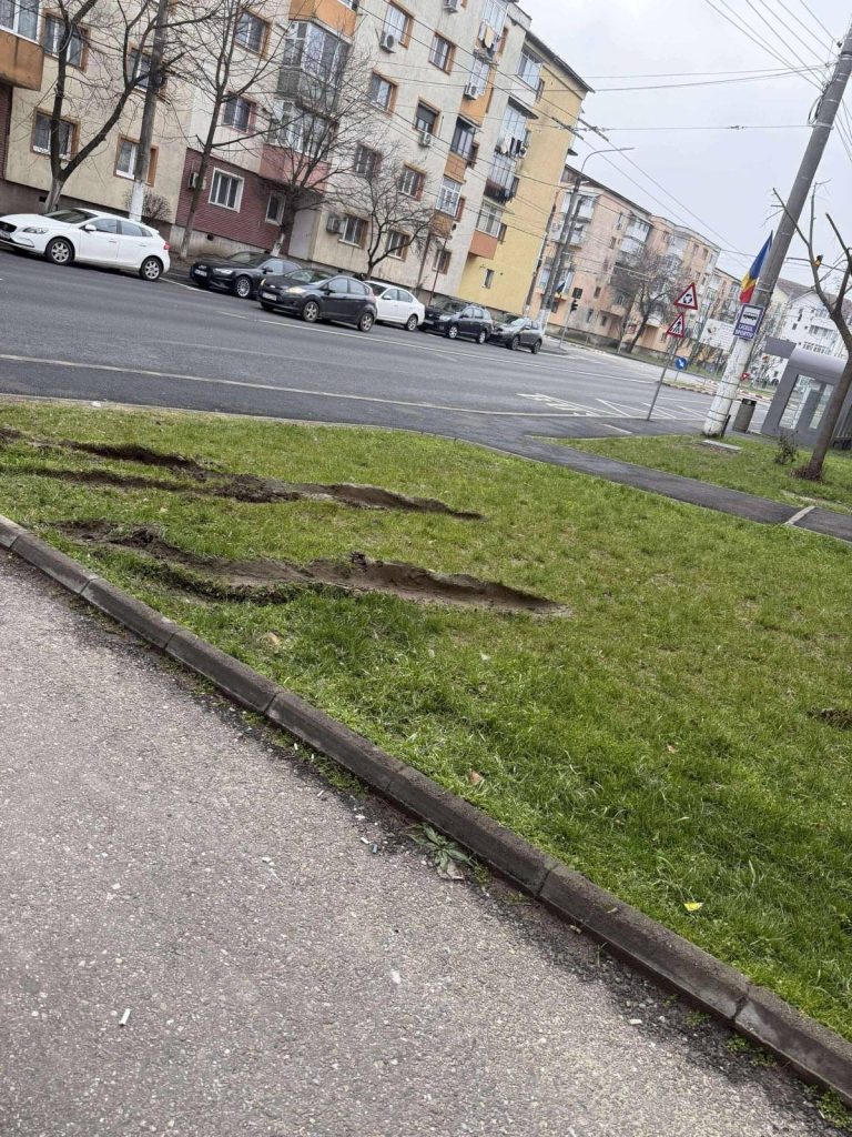 „A venit momentul să spunem STOP NESIMȚIRII! Aveți în față fotografii cu un spațiu verde, recent amenajat, și pe care un cetățean a găsit de cuviință să-l distrugă. Persoana va fi identificată în scurt timp pentru că avem camere de supraveghere în zona respectivă (Strada 9 Mai, în apropierea stației de troleibuz).