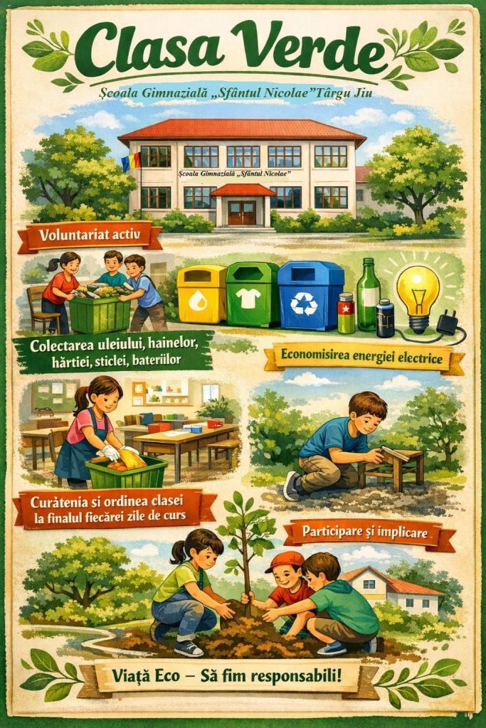 ”În cadrul Săptămânii Verzi, elevii vor participa la colectarea selectivă de hârtie, îmbrăcăminte, baterii uzate, ulei alimentar uzat și la activități de voluntariat (plantare, ecologizare). Fiecare gest contează! Împreună construim o școală mai verde și un viitor mai curat” transmite unitatea de învățământ.