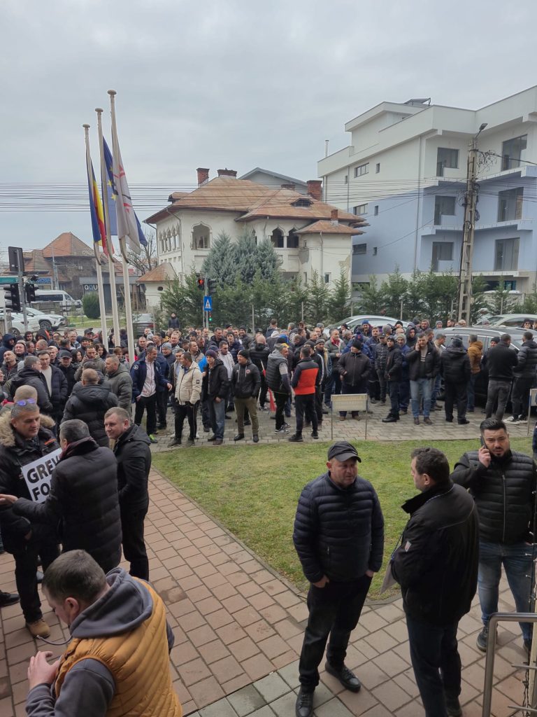 Angajații, care urmau să intre în schimburi la muncă, nu au mai ajuns la cariere și au venit în fața sediului companiei de la Târgu Jiu, anunțând că intră în greva foamei.