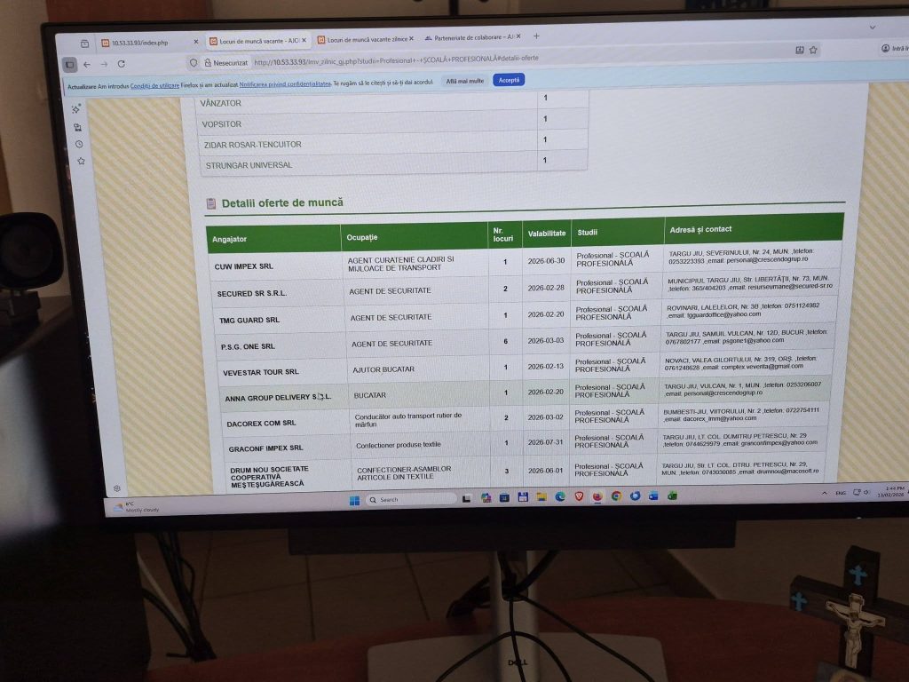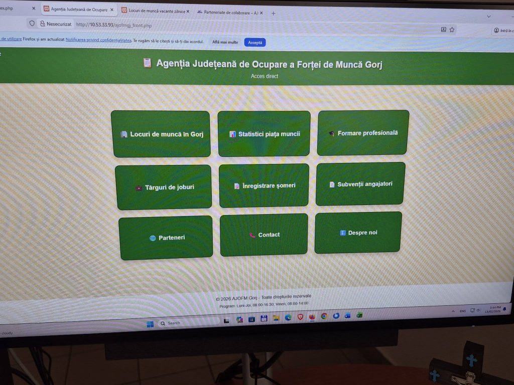 „Prin efort propriu, fără nici un buget alocat, am instalat împreună cu colegii, și este funcțional începând de astăzi, în holul de la parterul sediului central din Târgu-Jiu al Agenției Județene pentru Ocuparea Forței de Muncă Gorj, un Infotouch la care au acces absolut toate persoanele interesate ( șomeri, persoane în căutarea unui loc de muncă) la care pot consulta lista locurilor de muncă vacante actualizată zilnic, cursurile de formare profesională pe care le organizăm, urmând ca în perioada următoare să implementăm și alte funcționalități și informații utile tuturor” a notat, pe Facebook, directorul Romeo Chiriac.