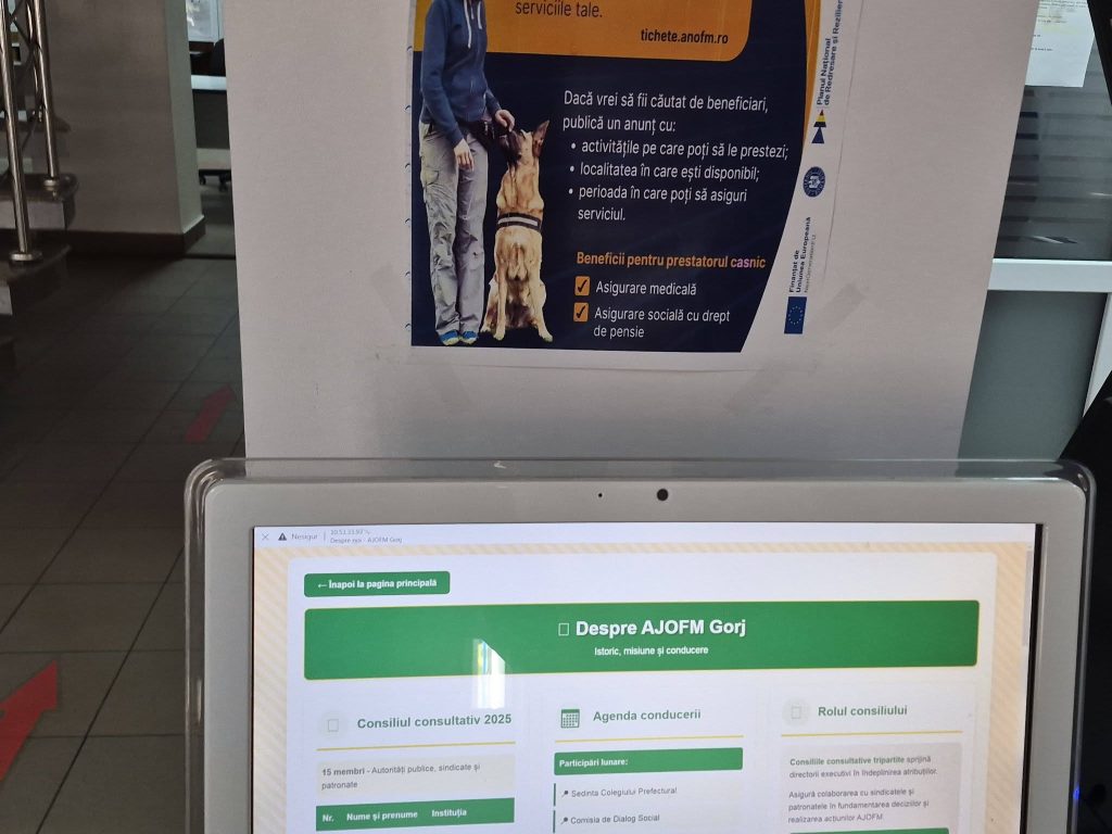 Prin intermediul Infotouch-ului pot fi consultate lista locurilor de muncă vacante, actualizată zilnic și cursurile de formare profesională organizate de AJOFM Gorj.
