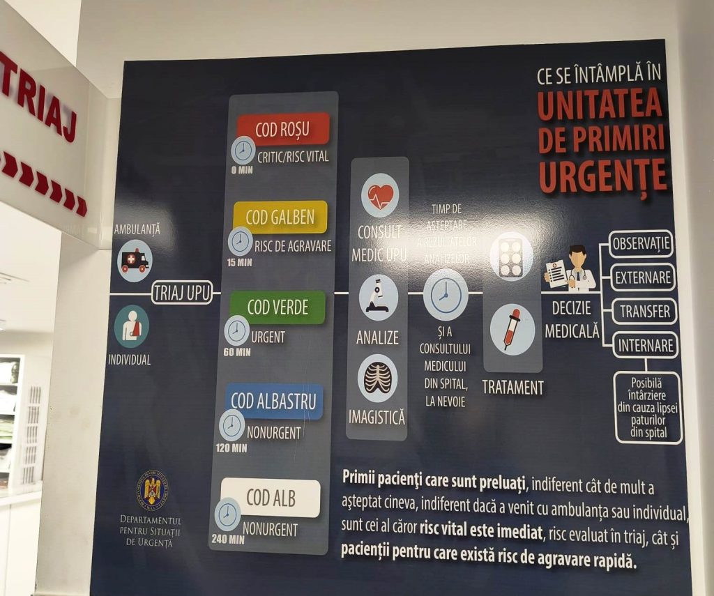 Triajul dictează ordinea: Ordinea intrării în cabinetul de consultații (sala de consultații) nu este cronologică (cine a ajuns primul), ci este stabilită prin triaj, de asistentul de triaj, pe baza gravității cazului (codurile roșu, portocaliu, galben, verde, albastru).