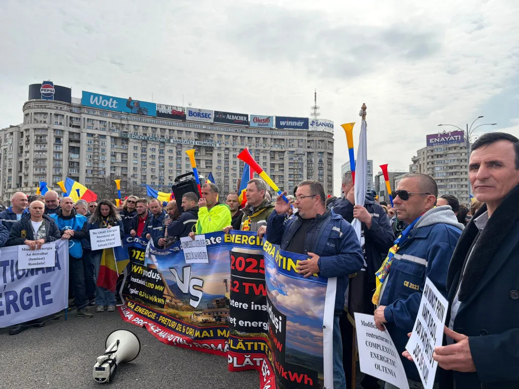 Aproximativ 1.000 de mineri şi energeticieni de la Complexul Energetic Oltenia protestează, marţi, în fața Guvernului, în Piaţa Victoriei. Oamenii sunt nemulţumiţi de concedierilor anunţate de la 1 aprilie și de incertitudinile legate de viitorul industriei miniere din România.