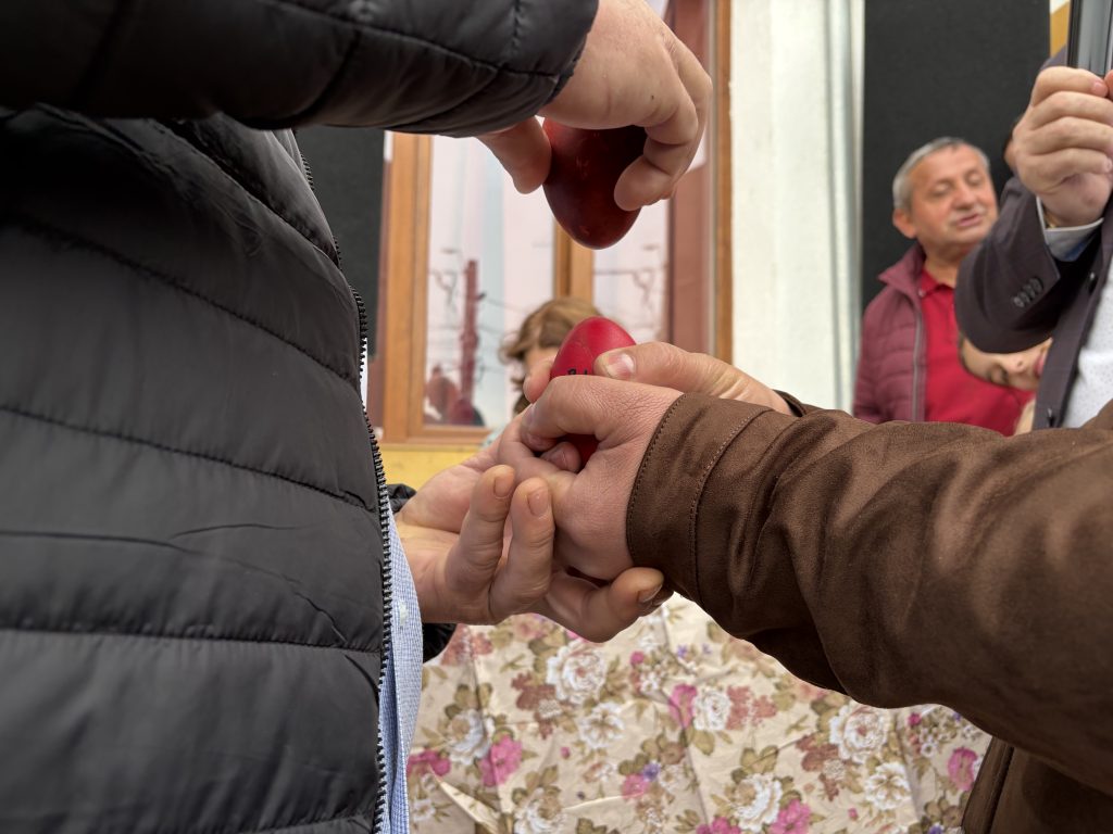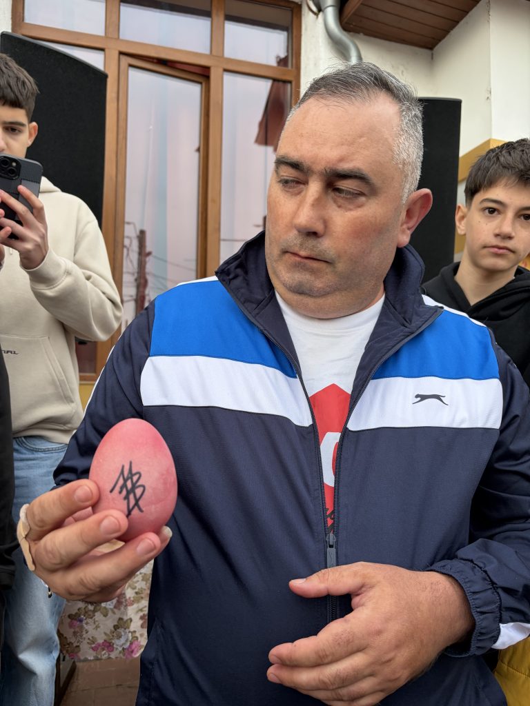 Zeci de localnici din Baia de Fier au participat la un concurs de ciocnit ouă de gâscă în a doua zi de Paște.
