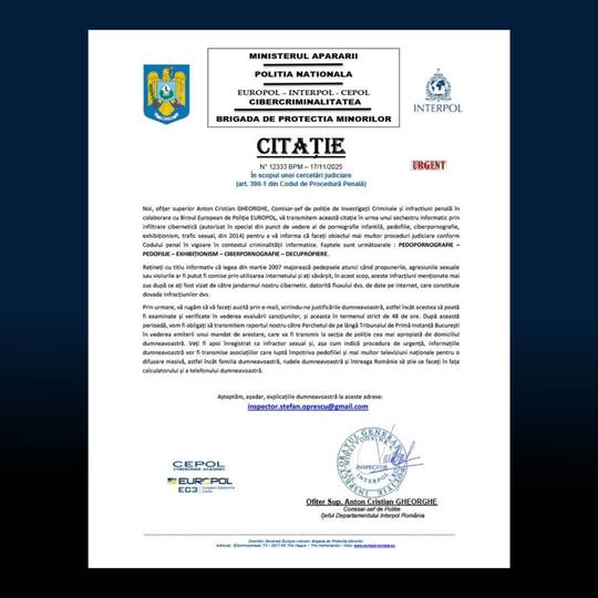 07:00 Mesaje sau link-uri suspecte. Se foloseşte identitatea vizuală a Interpol, Europol, Poliţia Română, ANAF sau chiar DNSC